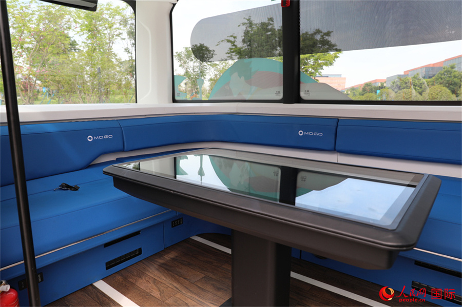 | 自動駕駛巴士內(nèi)部。人民網(wǎng)記者 符園園攝 |