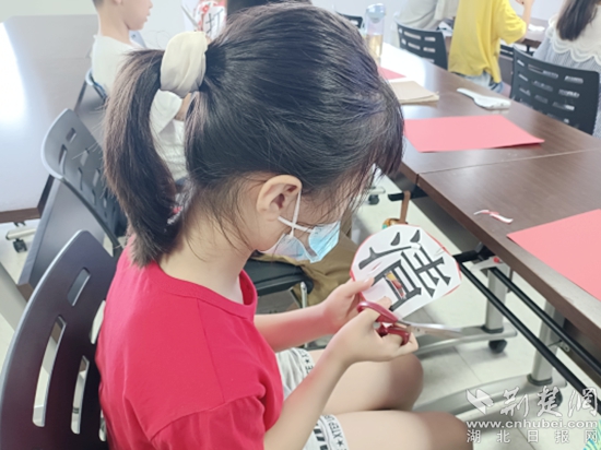 而后,小朋友們你一言我一語,討論著怎么把作品剪好。雖然很多小朋友是第一次接觸剪紙,但完成的作品也是有模有樣。大家剪“廉”字、刻“蓮”花,一雙雙巧手精心雕琢,一幅幅作品蘊(yùn)含廉潔情懷,“廉”心共筑的美好愿景通過剪紙得以表達(dá),崇廉尚潔的正能量也通過作品互相傳遞。