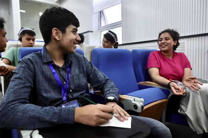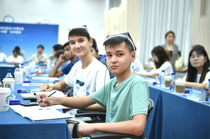 “上合小記者”在中國新聞社舉行的培訓(xùn)活動上聽講。中新社供圖