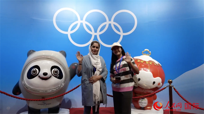 “上合小記者”與2022北京冬奧會吉祥物合影。實習(xí)生 方明軒攝