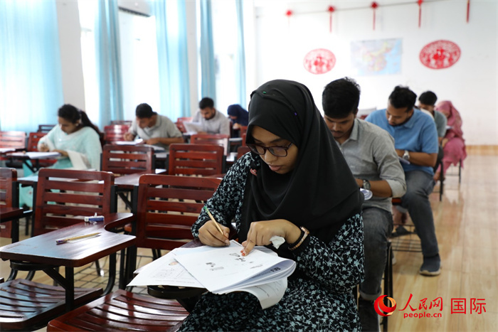 | 達(dá)卡大學(xué)孔子學(xué)院學(xué)生參加漢語(yǔ)水平考試。人民網(wǎng)記者 孫廣勇攝 |