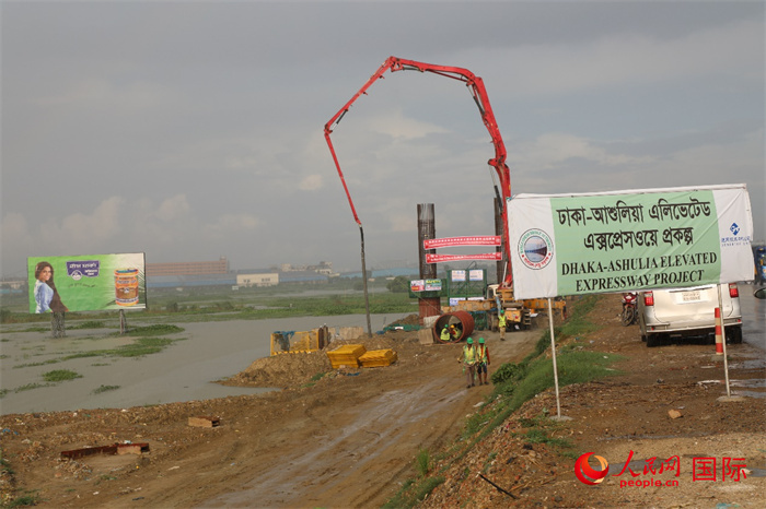 | 達(dá)卡至阿蘇利亞高架高速公路建設(shè)現(xiàn)場(chǎng)。人民網(wǎng)記者 孫廣勇攝 |