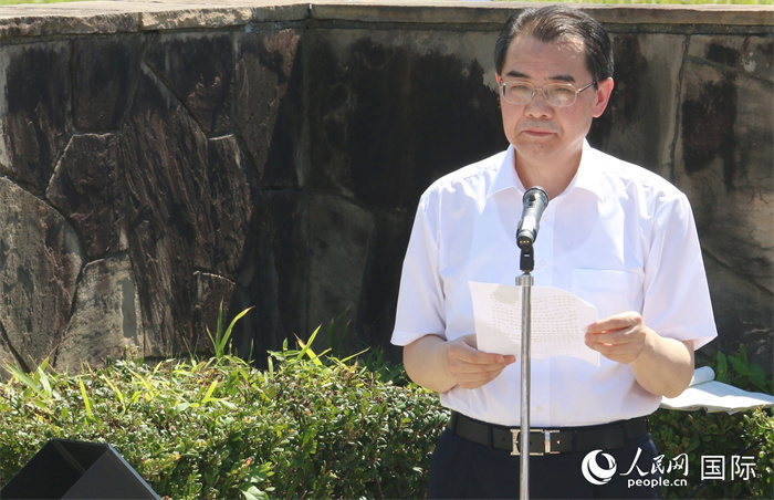 中國(guó)駐日本大使吳江浩在紀(jì)念儀式上致辭。人民網(wǎng) 許可攝