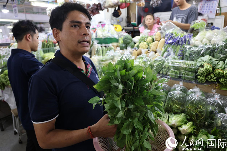 | 7月19日,泰國曼谷藍象餐廳員工向參加活動的多國代表介紹如何挑選新鮮蔬菜。 人民網(wǎng)記者 張矜若攝 |