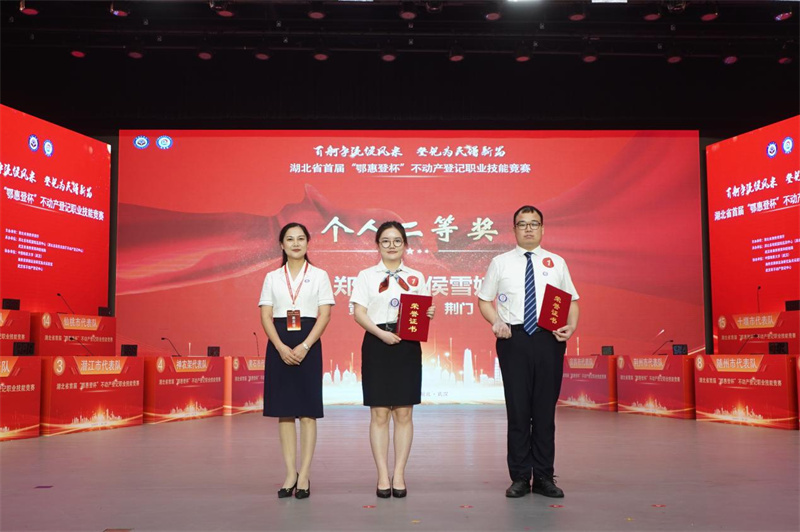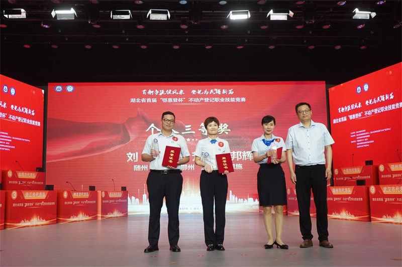 本次競賽是全國首屆不動(dòng)產(chǎn)登記職業(yè)技能競賽的湖北省選拔賽,也是全面實(shí)施不動(dòng)產(chǎn)統(tǒng)一登記制度以來,我省首次舉辦不動(dòng)產(chǎn)登記職業(yè)技能競賽,在全省自然資源系統(tǒng)引起了較大反響。此次競賽內(nèi)容、考試大綱及競賽規(guī)則均按照全國不動(dòng)產(chǎn)登記職業(yè)技能競賽的相關(guān)規(guī)定執(zhí)行,涵蓋黨建黨史知識、黨的二十大精神,不動(dòng)產(chǎn)登記相關(guān)法律、法規(guī)、規(guī)范性文件,不動(dòng)產(chǎn)登記操作實(shí)務(wù),窗口服務(wù)規(guī)范等內(nèi)容,優(yōu)勝選手將代表我省與全國各省選拔的優(yōu)秀選手進(jìn)行交流學(xué)習(xí)、切磋技藝。全省17支隊(duì)伍,68名參賽選手,通過層層選拔,代表全省4000余名不動(dòng)產(chǎn)登記工作人員參加此次競賽。經(jīng)過筆試、現(xiàn)場競答、代表展示等環(huán)節(jié)的激烈角逐,武漢市代表隊(duì)榮獲團(tuán)體一等獎(jiǎng),咸寧市代表隊(duì)、孝感市代表隊(duì)榮獲團(tuán)體二等獎(jiǎng),仙桃市代表隊(duì)、襄陽市代表隊(duì)、黃岡市代表隊(duì)榮獲團(tuán)體三等獎(jiǎng);來自武漢市代表隊(duì)杜殿虎獲個(gè)人一等獎(jiǎng),來自黃岡市代表隊(duì)鄭鵬、荊門市代表隊(duì)侯雪婷獲個(gè)人二等獎(jiǎng),來自隨州市代表隊(duì)劉萌、鄂州市代表隊(duì)李芳、恩施州代表隊(duì)張邦輝獲個(gè)人三等獎(jiǎng)。