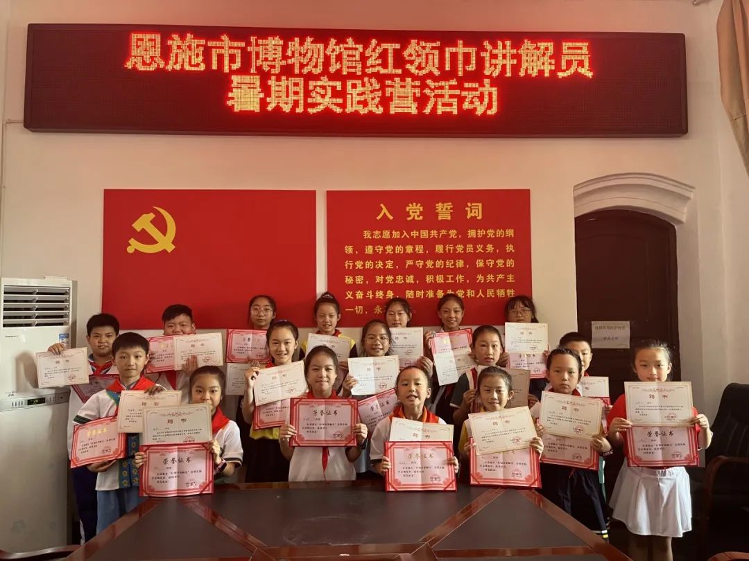 本次實(shí)踐營培訓(xùn)除了集中培訓(xùn)和展館實(shí)地講解培訓(xùn)外,還安排了恩施州博物館、黨員政治生活館(中共鄂西特委舊址)等革命舊址和愛國主義教育基地的參觀學(xué)習(xí),紅領(lǐng)巾講解員在參觀中學(xué)習(xí)家鄉(xiāng)歷史,進(jìn)一步弘揚(yáng)紅色革命文化。