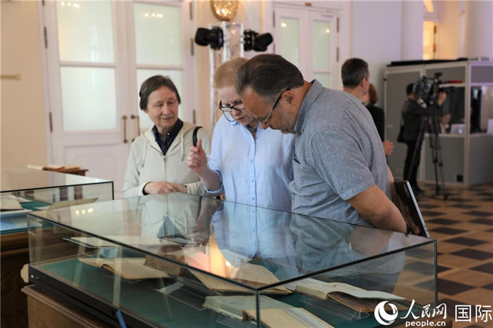 中俄圖書館論壇嘉賓共同參觀由俄羅斯國立列寧圖書館舉辦的館藏中國古籍善本圖書展。人民網記者 隋鑫攝