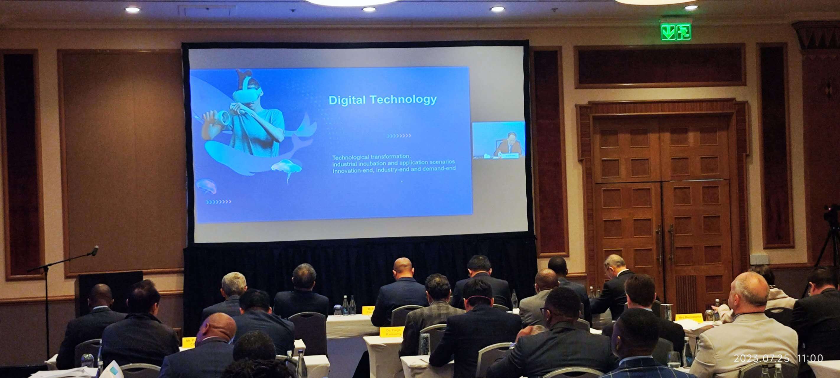 中國貿(mào)促會副會長于健龍、中國駐約翰內(nèi)斯堡總領(lǐng)事唐中東、南非商業(yè)聯(lián)合會副CEO庫勒卡尼·馬特出席并致辭,南非駐中國公參優(yōu)素?!さ倌獱柧€上視頻致辭。中南雙方協(xié)會和企業(yè)代表等40余人線下出席了本次活動。
