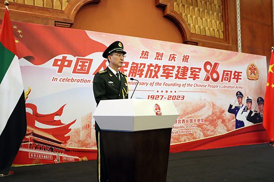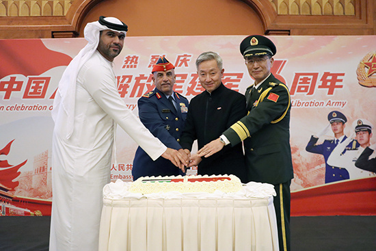 人民網(wǎng)阿布扎比7月28日電 (記者管克江)中國駐阿聯(lián)酋大使館7月26日在阿布扎比舉辦招待會,熱烈慶祝中國人民解放軍建軍96周年。中國駐阿聯(lián)酋大使張益明、阿聯(lián)酋國防國務(wù)部長軍事顧問伊斯哈格少將、阿聯(lián)酋外交部東亞司副司長卡爾卡維及阿武裝部隊、政府部門、駐阿武官團(tuán)、社會各界人士和部分華僑華人、中資機(jī)構(gòu)及留學(xué)生代表200余人出席招待會。