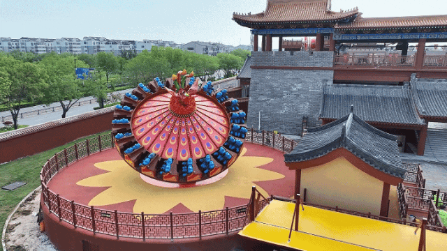 《鳳舞九天》飛天轉(zhuǎn)盤游樂項目,不僅外觀精美,而且體驗感極強!鳳凰同風(fēng)起飛于九天之上,拍打著它的羽翼,漸漸遠去杳無蹤跡。座艙在360°公轉(zhuǎn)的同時又有規(guī)律的偏心旋轉(zhuǎn),讓你擁有如鳳凰飛翔般的非凡體驗。
