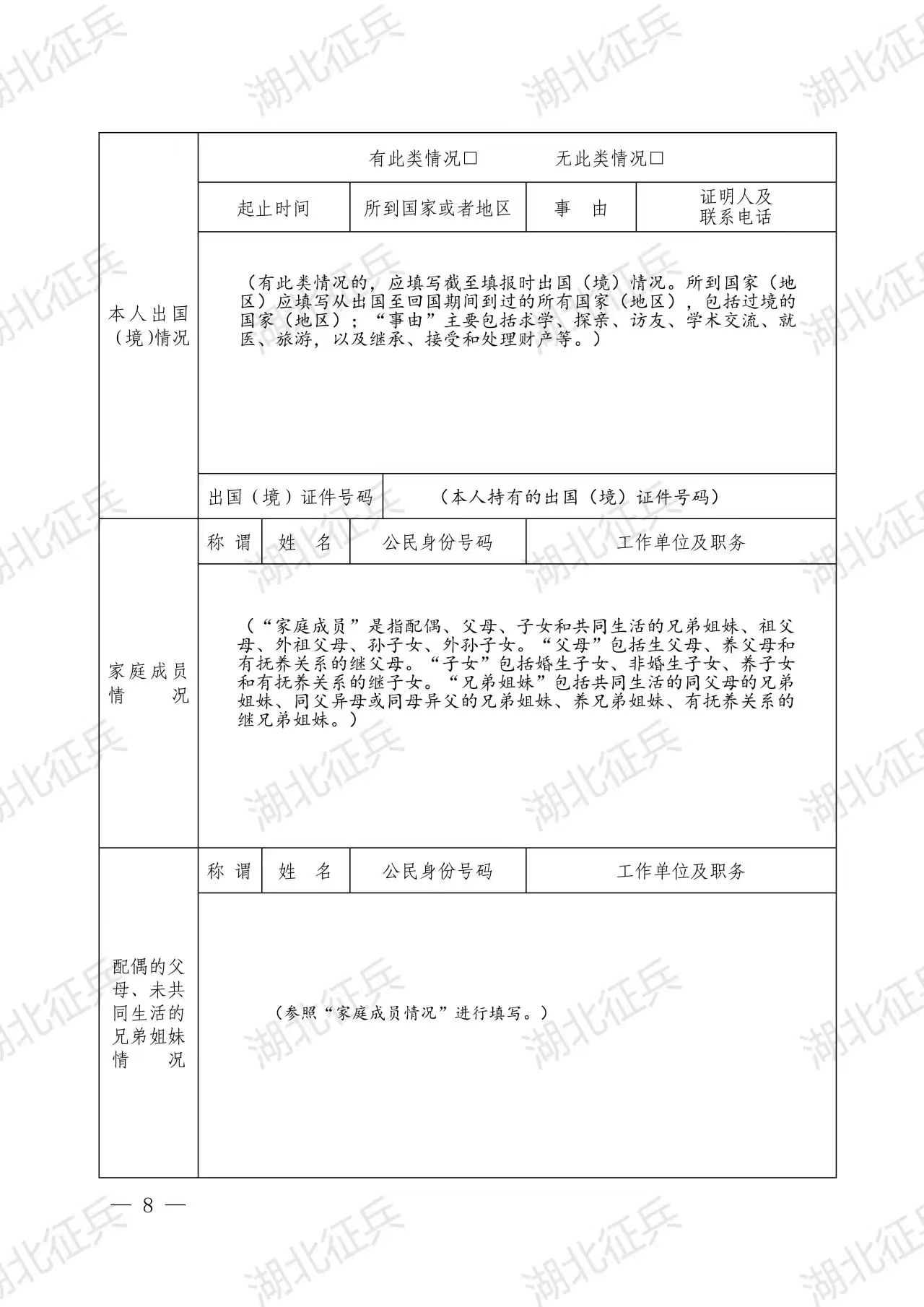 10.家庭成員、配偶的父母、未共同生活的兄弟姐妹有危害國(guó)家安全行為受到刑事處罰或者正在被偵查、起訴、審判的,組織、參加、支持民族分裂、暴力恐怖、宗教極端等非法組織的,是邪教、有害氣功、黑社會(huì)性質(zhì)組織或者會(huì)道門成員的;