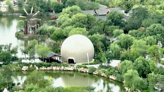 《飛越清明上河圖》球幕影院項目以北宋張擇端的《清明上河圖》為主題,利用數(shù)字科技,讓這幅傳世佳作在12米超大直徑的IMAX巨型球形熒幕上煥發(fā)出新的生機(jī)。整個球幕畫面為360°全景呈現(xiàn),利用科技呈現(xiàn)裸眼3D版《清明上河圖》,打造沉浸式觀影體驗(yàn)。座椅通過模擬上升、俯沖、滑翔等動作,帶領(lǐng)游客穿越千年歷史畫卷,一覽宋代盛景,讓游客猶如身臨其境般暢游在3D版《清明上河圖》畫卷之中。