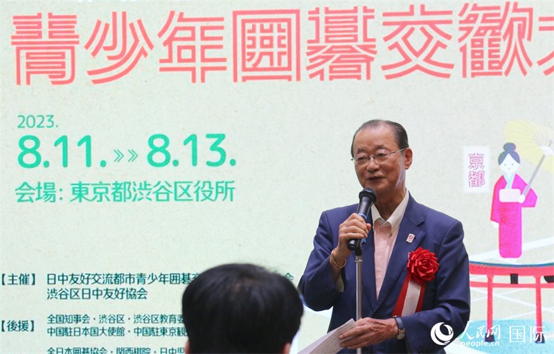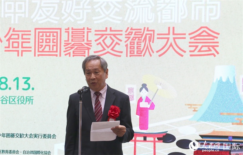 | 主辦方代表、中日友好交流都市青少年圍棋交流大會委員會會長河村建夫發(fā)表致辭。人民網(wǎng) 許可攝 |