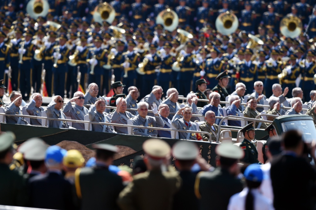 2015年9月3日,中國(guó)人民抗日戰(zhàn)爭(zhēng)暨世界反法西斯戰(zhàn)爭(zhēng)勝利70周年紀(jì)念大會(huì)在北京隆重舉行。這是抗戰(zhàn)老兵乘車(chē)方隊(duì)通過(guò)天安門(mén)廣場(chǎng)。新華社記者 王定昶 攝