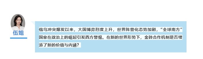 伍姐邀請(qǐng)中國(guó)國(guó)際問(wèn)題研究院發(fā)展中國(guó)家研究所所長(zhǎng)王友明、中國(guó)現(xiàn)代國(guó)際關(guān)系研究院金磚暨G20中心主任徐飛彪、社科院“一帶一路”研究中心副秘書(shū)長(zhǎng)許文鴻,解讀本屆金磚峰會(huì)。