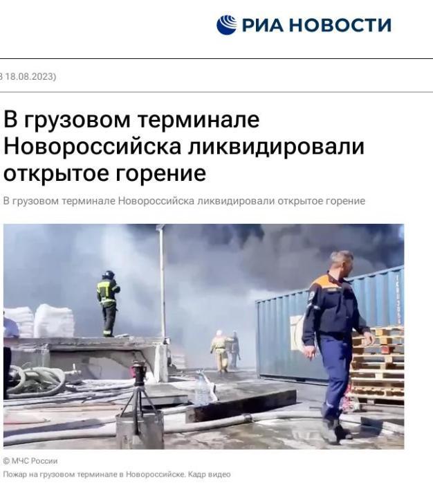 中新網(wǎng)8月18日電 據(jù)俄新社報(bào)道,當(dāng)?shù)貢r(shí)間18日,俄羅斯新羅西斯克一貨運(yùn)碼頭起火,過火面積達(dá)1300平方米,目前大火已被撲滅。