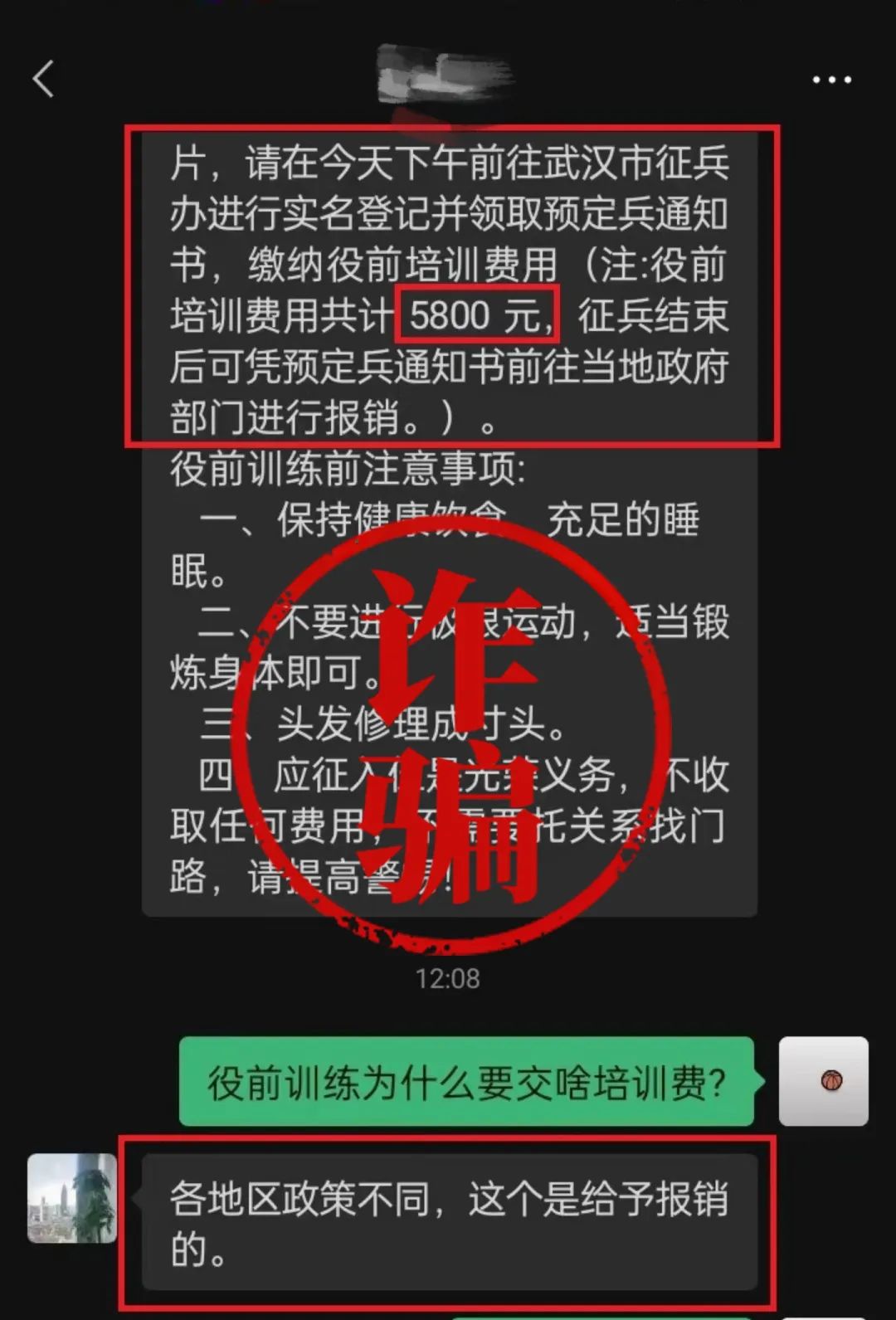 每年征兵工作的各個階段,總有“不法分子”借機(jī)行騙,近日就出現(xiàn)了這樣一則以各地準(zhǔn)備役前教育工作為契機(jī),聲稱“繳納役前教育培訓(xùn)費(fèi)用”進(jìn)行征兵詐騙。