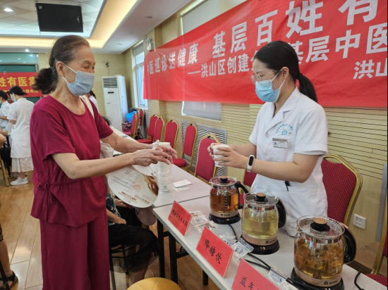 活動(dòng)現(xiàn)場(chǎng),梨園街東湖社區(qū)衛(wèi)生服務(wù)站家庭醫(yī)生團(tuán)隊(duì)也在為居民進(jìn)行血壓的檢測(cè),中醫(yī)科帶來了多種養(yǎng)生茶飲,在辯證后為居民提供適合的茶飲進(jìn)行體驗(yàn),將“舌尖上的養(yǎng)生”落到實(shí)處。此次進(jìn)行茶飲體驗(yàn)的居民由87人次。