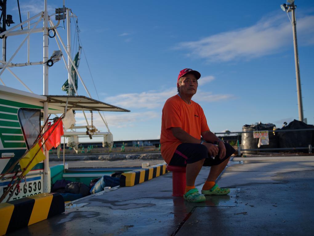 8月23日,打漁歸來的小野春雄坐在日本福島縣新地町的漁港。新華社記者 張笑宇 攝