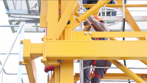 檢驗現(xiàn)場,檢驗員們?nèi)蔽溲b,戴上安全帽,系好安全繩,沿著狹窄的爬梯,往塔吊頂端攀爬著。在檢驗過程中,檢驗員嚴(yán)格按照《起重機(jī)械定期檢驗規(guī)則》要求,依次開展了技術(shù)資料審查、作業(yè)環(huán)境和外觀檢查、金屬結(jié)構(gòu)檢查、主要零部件檢驗、安全保護(hù)和防護(hù)裝置檢查、液壓系統(tǒng)檢查、司機(jī)室檢查、電氣檢查、性能試驗等項目的檢驗工作。整個塔吊的檢驗歷經(jīng)了2個多小時。