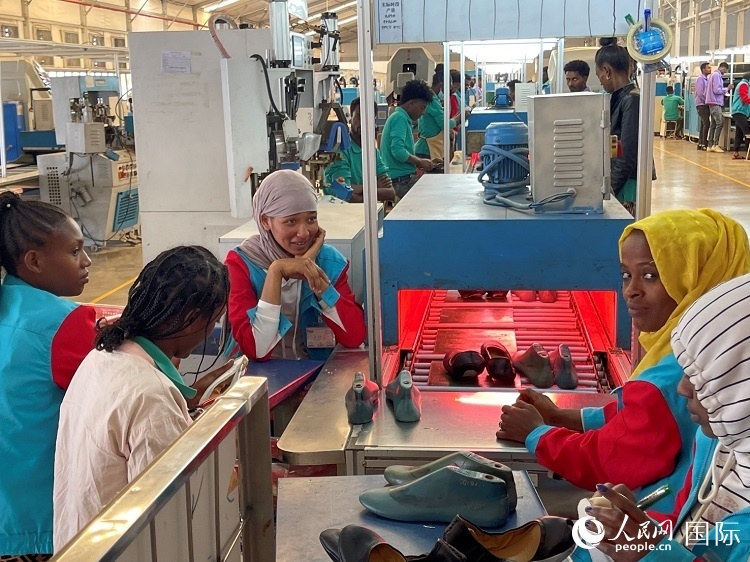 在華堅(jiān)輕工業(yè)城,制鞋工人在生產(chǎn)線上工作。人民網(wǎng)記者 趙艷紅攝