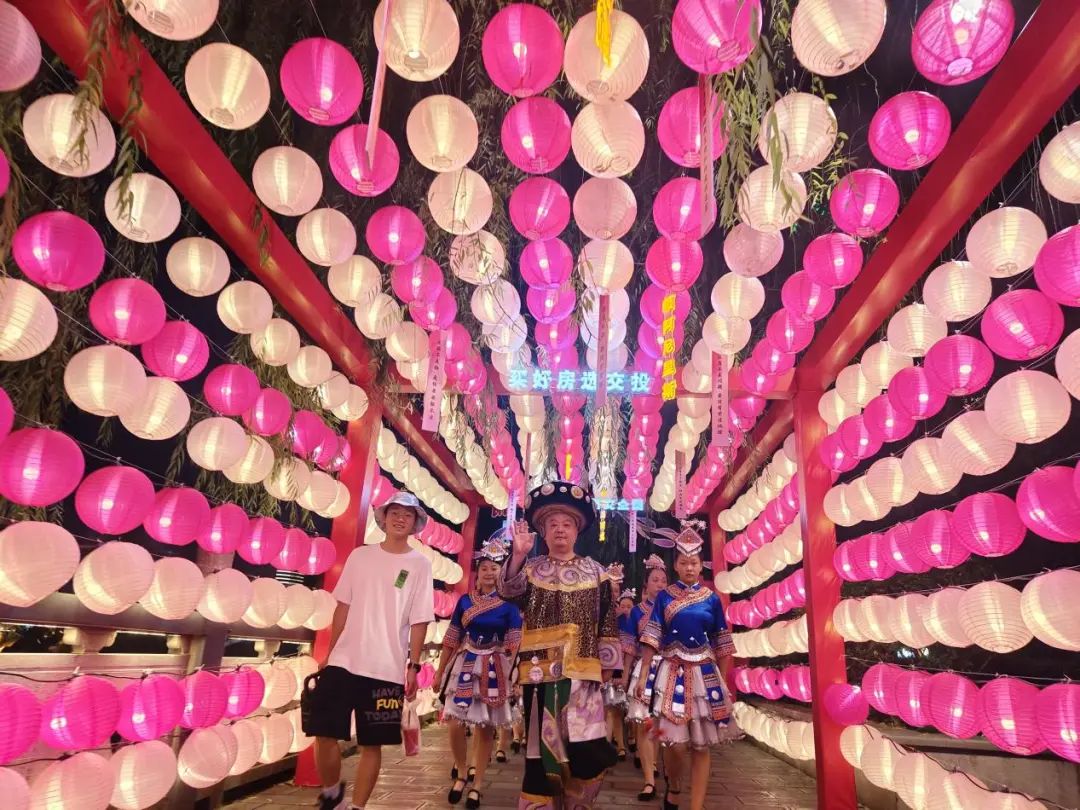 “姑娘們,阿爹帶你們?nèi)ペs場(chǎng)相親,要不要得?”將游客引入傳統(tǒng)土家“趕場(chǎng)相親”情境中,還原舊時(shí)女兒會(huì)“趕場(chǎng)相親”的場(chǎng)景,土司老爺帶著30余名幺妹兒穿梭在“土”味情話燈展長(zhǎng)廊中,“額阿尼阿次”等土家語(yǔ)情話躍然進(jìn)入視野,體現(xiàn)了恩施土家族文化的浪漫。