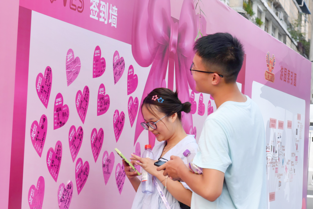 本屆游園會(huì)活動(dòng)在設(shè)計(jì)之初就征集了時(shí)下最受年輕人歡迎的互動(dòng)游戲,推出的系列互動(dòng)活動(dòng)也深諳年輕人喜好,深得年輕人好評(píng)?!敖衲甑呐畠簳?huì)與以往相比,我們有更強(qiáng)烈的歸屬感,這是屬于我們年輕人的活動(dòng)?!边@是游客主動(dòng)向工作人員說(shuō)出的心里話。事實(shí)上,因參與游園會(huì)活動(dòng),或留下相親信息、或傳遞聲音情書(shū)、或參與愛(ài)情大冒險(xiǎn),他們結(jié)識(shí)到了心動(dòng)的另一半。