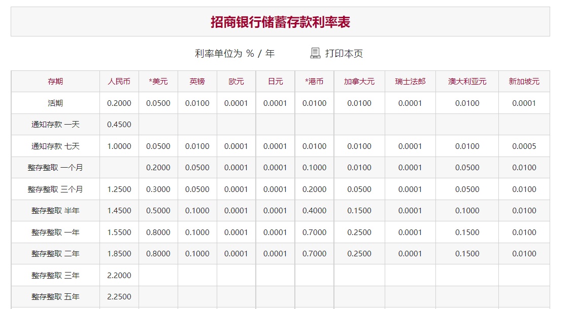 股份行中,整存整取1年期下調(diào)10個(gè)基點(diǎn),2年期下調(diào)20個(gè)基點(diǎn),3年期、5年期下調(diào)25個(gè)基點(diǎn)。具體來看,招商銀行整存整取1年期利率下調(diào)10個(gè)基點(diǎn)至1.55%,2年期利率下調(diào)20個(gè)基點(diǎn)至1.85%,3年期、5年期利率下調(diào)25個(gè)基點(diǎn)至2.2%、2.25%。