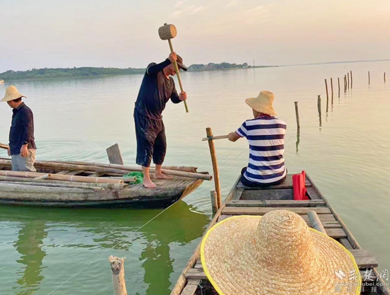 工人插桿、圍網(wǎng)。通訊員 供圖