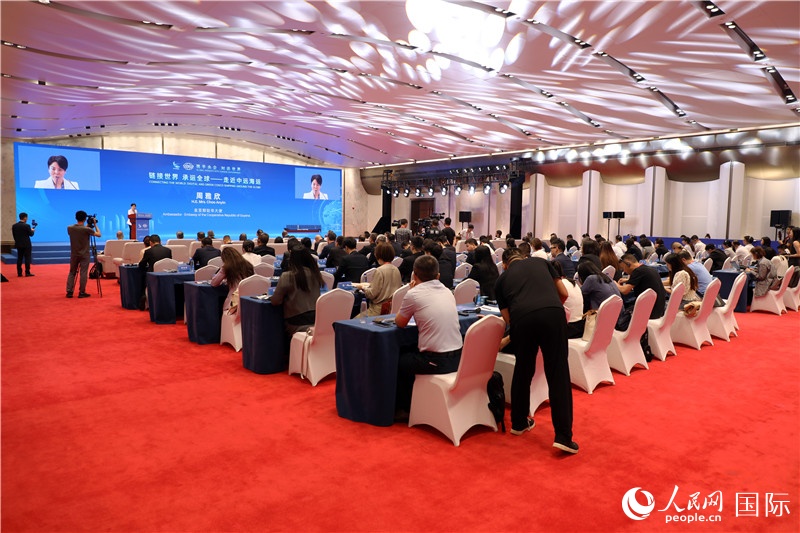 | 圖為剛果(金)駐華大使巴盧穆埃內(nèi)在對話會上致辭。人民網(wǎng)記者 趙益普攝 |