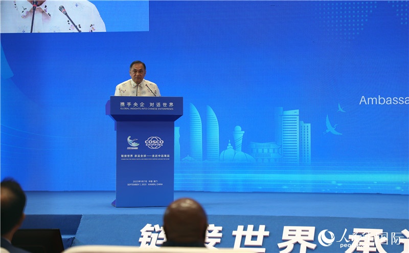 人民網(wǎng)廈門9月7日電 (記者趙益普)7日上午,2023“攜手央企 對話世界”對話會活動在福建廈門舉行。本次對話會主題為“鏈接世界 承運全球”,由外交部、廈門市政府和中國遠(yuǎn)洋海運集團(tuán)聯(lián)合主辦,來自圭亞那、剛果(金)、菲律賓等15個國家的外交官,以及中方政府和企業(yè)代表共約100人參加會議。