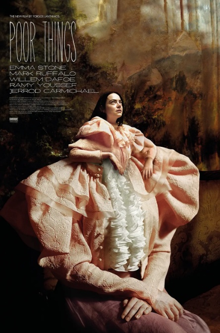 《可憐的東西》改編自同名蘇格蘭小說,講述了一個“女版科學怪人”式的奇幻故事。斯通在片中飾演的再生人貝拉從威廉·達福飾演的古怪科學家手中誕生,在成長過程中展開對人類世界的探索,無視道德和教育的她通過不斷放縱欲望感知社會,行為邏輯有種荒誕的諷刺感。