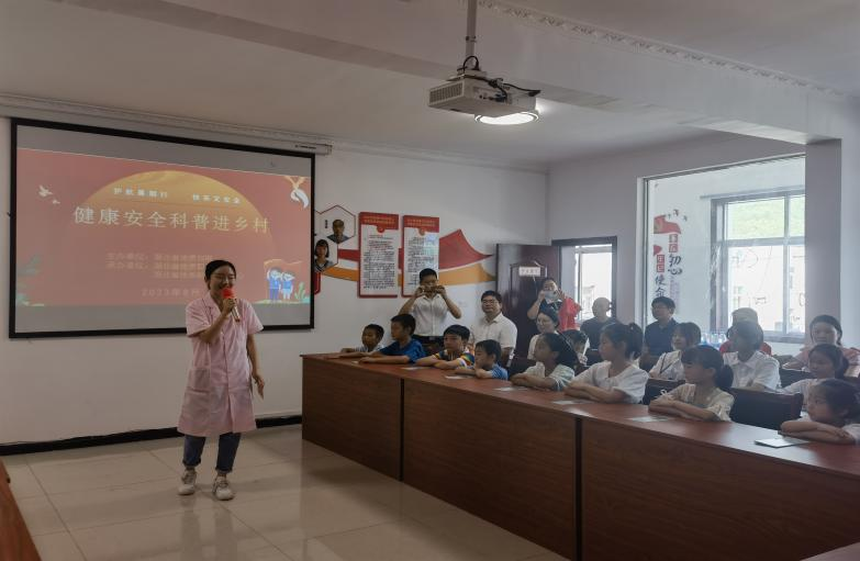 在湖北十堰,地質(zhì)巾幗醫(yī)療志愿者早早來到何家灣村衛(wèi)生室為30多名孩子開展義診活動,發(fā)放健康教育宣傳冊,提醒孩子們要強化健康理念,養(yǎng)成良好的生活習慣,并將檢查結(jié)果及時向家長進行了反饋,希望家長們能夠重視孩子的健康狀況,共同做好孩子健康培育工作。在健康知識宣講環(huán)節(jié),巾幗志愿者們以互動交流的方式講解演示了溺水、中暑、燒燙傷、氣道異物、食物中毒、心肺復蘇等常見緊急救護,以寓教于樂做游戲的方式開展“手潔眼亮”健康科普,現(xiàn)場氣氛熱烈歡樂。