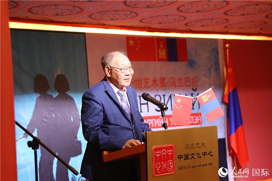 | 9月10日現場,蒙古國“人民畫家”東不勒致辭。人民網記者 霍文攝 |