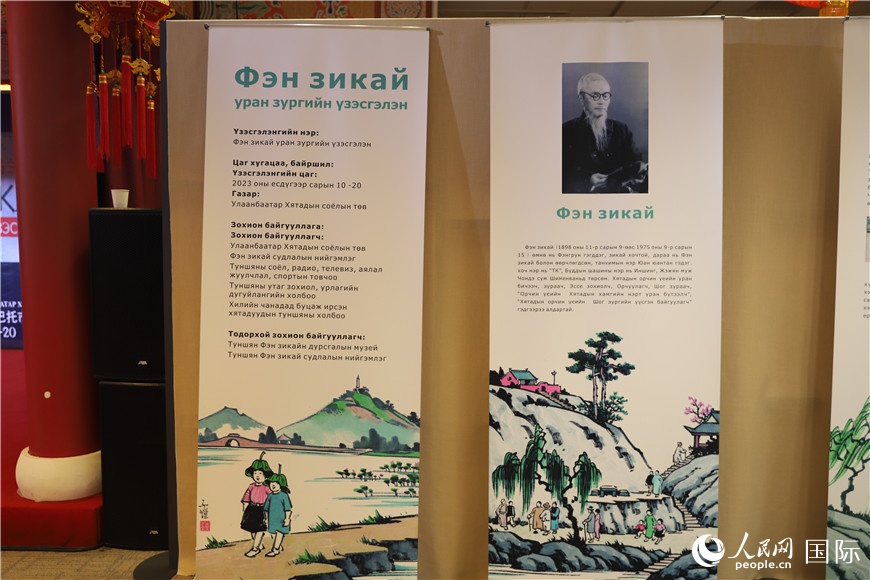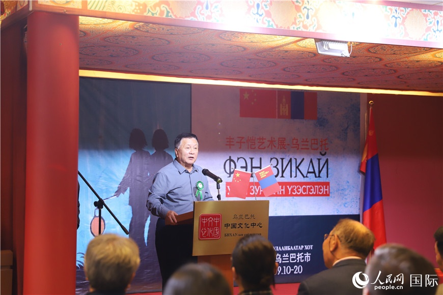 李峙在致辭中表示,豐子愷是中國現代著名畫家、散文家、美術教育家、音樂教育家、漫畫家、書法家和翻譯家,以中西融合畫法創(chuàng)作漫畫以及散文而著稱,他為中國現代漫畫的發(fā)展奠定了基礎。本次藝術展展出了豐子愷高仿藝術作品60件,以及豐子愷、豐一吟翻譯的《蒙古短篇小說集》,希望通過展覽讓蒙古國觀眾了解這位中國現代偉大藝術家,增進對中華文化的了解,以藝術為媒,深度感知一個全面、真實、立體的中國,進一步促進兩國民心相通。