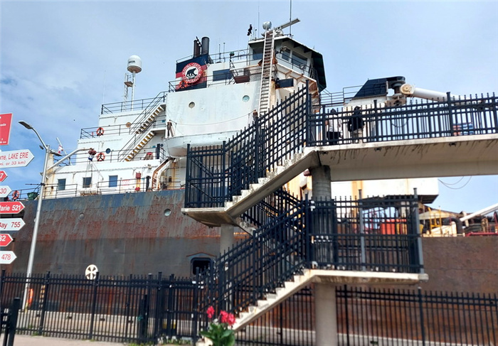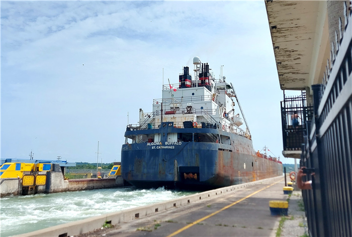 觀賞船只在韋蘭運河中過閘過橋確是圣·凱瑟琳市最獨特的好景致。當日中午,在韋蘭運河中心參觀運河建造歷史與閘道實景模型之后,根據館內屏幕顯示的船只過閘信息,我們從博物館乘電梯抵達3號船閘的高架觀景臺,這里是觀賞船舶過閘過橋全過程的最佳位置。當時正趕上一艘貨船緩緩進入3號閘道。觀景臺上的展板顯示,運河南北兩端水面高度相差約99.5米,由下游至上游方向順序編號設有8個船閘,4、5、6號均為雙線連續(xù)3級船閘,1、2、3、7和8號為單線單級船閘。1-7號船閘長233.5米、寬24.4米、水深8.2米,平均提升高度為14.2米,而位于南端靠近伊利湖的8號船閘規(guī)格未變,但它是調節(jié)湖水水位的最終控制性船閘,因此其提升水位高度則為0.3-1.2米。允許在運河中通過的船舶通稱Laker,除船頭船尾外,船身整體均為方形、船底平整,以適應運河船閘的要求。行船最大規(guī)格為:長225.5米,寬23.8米,載重吃水深8米,這種大船可以運載2.9萬噸鐵礦石或38700立方米貨物。每個船閘約在10分鐘內可充水9萬立方米,船舶通過每組船閘的全部閘道約需45分鐘。我們在3號閘道觀景臺看到那艘貨船就是一艘巨型貨船,可以伸手觸摸船舷,見證它在閘室中“嚴絲合縫”、升升降降的狀態(tài)??吹匠鲩l徐徐南行的貨船緊接著通過一座升起的高架橋,貨船行近大橋時、運河兩側的高塔將橋面整體緩緩升起,待貨船順利通過后、橋面又降至與公路面齊平的原位,讓往來車輛照常行駛。在韋蘭運河中行駛船舶的高度限制為35.5米,就是為使之順利通過這座高架橋的底部。運河沿線其他橋隧則為開啟橋或河下隧道。當日,我們在觀景臺上還看到多艘船只通過正在打開的開啟橋,船通過后、又見橋面緩緩合攏,橋上車輛行人照常通行。由于過閘過橋,船只航行韋蘭運河全線平均約需11個小時。每年約有3000艘船只行駛于韋蘭運河中,年貨運量達4000萬公噸,貨運以鐵礦、鋼材、煤炭、大麥、玉米和小麥為主。這條運河不但促進了多倫多經濟的發(fā)展,每年為尼亞加拉地區(qū)地區(qū)創(chuàng)造2.2億加元的經濟收益和大量就業(yè)機會;也使美國底特律、克里夫蘭、密爾沃基等大湖港和芝加哥,能與加拿大的蒙特利爾、魁北克相連,將五大湖區(qū)沿岸城市的工業(yè)制成品由航道輸出,運往大西洋,成為五大湖區(qū)經濟發(fā)展的重要依托。眾所周知,作為世界三大跨國瀑布之一的尼亞加拉瀑布,一直吸引著全球游客的目光;作為加拿大20世紀十大公共工程之一、作為世界十大運河之一、作為圣勞倫斯航道主體運河的韋蘭運河,如今也成為世界游客追逐觀賞的好風景。(馮霄、于世文)