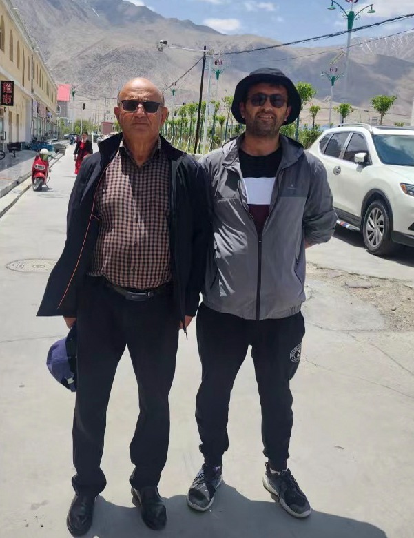 巴基斯坦商人賽福拉(左)和兒子卡里姆在中國新疆塔縣街頭合影。新華社發(fā)(受訪者供圖)
