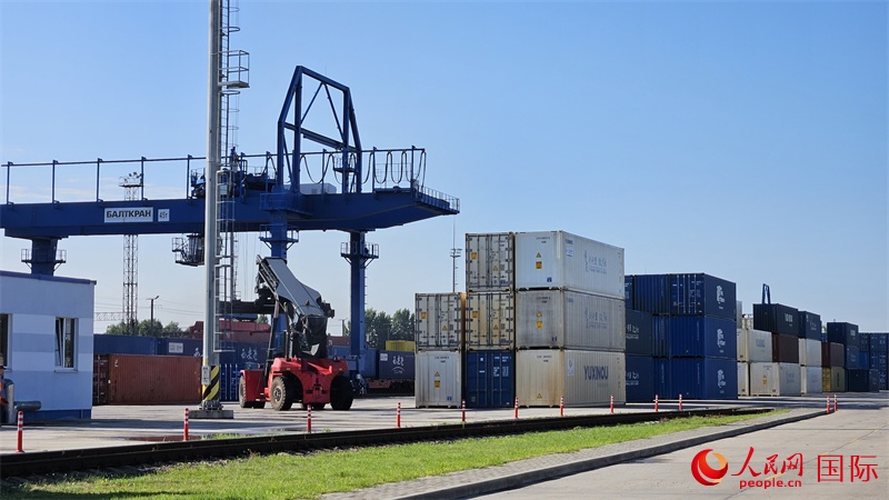 | 布列斯特北站,來自中國的集裝箱隨處可見。人民網(wǎng)記者 王震攝 |