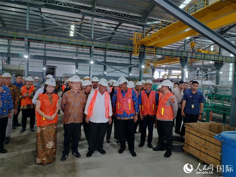 | 巴蘇基、納納·蘇賈納、王德武、葉帶鳳等中印尼人士視察工廠。人民網(wǎng)記者 李培松攝 |