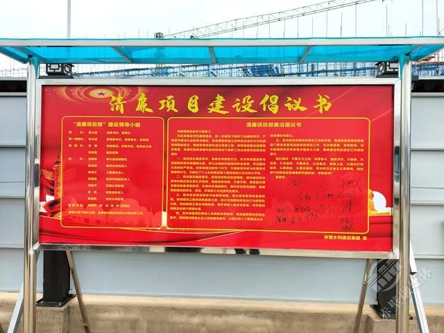 赤壁中試谷·智能無人系統(tǒng)測試基地赤壁市水建集團項目部前的清廉項目建設(shè)倡議書的簽名板上,密密麻麻地簽滿了名字。一個簽名就是一份承諾,一個簽名就是一份責(zé)任,一個簽名就是水建集團建設(shè)清廉國企的堅實基礎(chǔ)。