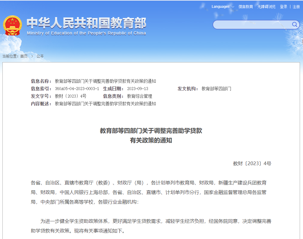 近日,教育部、財政部、中國人民銀行、金融監(jiān)管總局等四部門印發(fā)通知調(diào)整完善助學(xué)貸款有關(guān)政策。