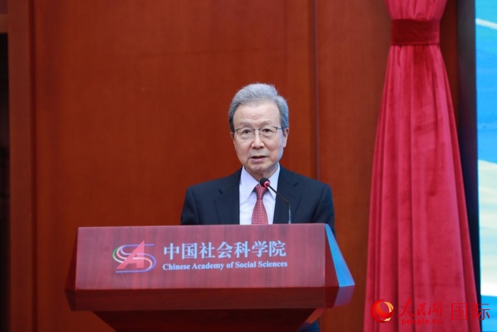 | 中國社會科學院副院長王昌林發(fā)表視頻致辭。人民網(wǎng)記者 陳建軍攝 |