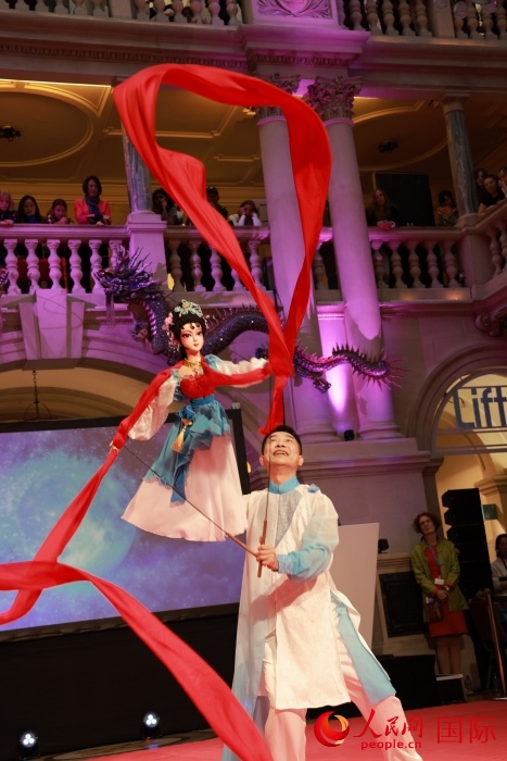 | 杜頭木偶長綢舞《人偶情》的表演如泣如訴。人民網(wǎng)記者 邢雪攝 |