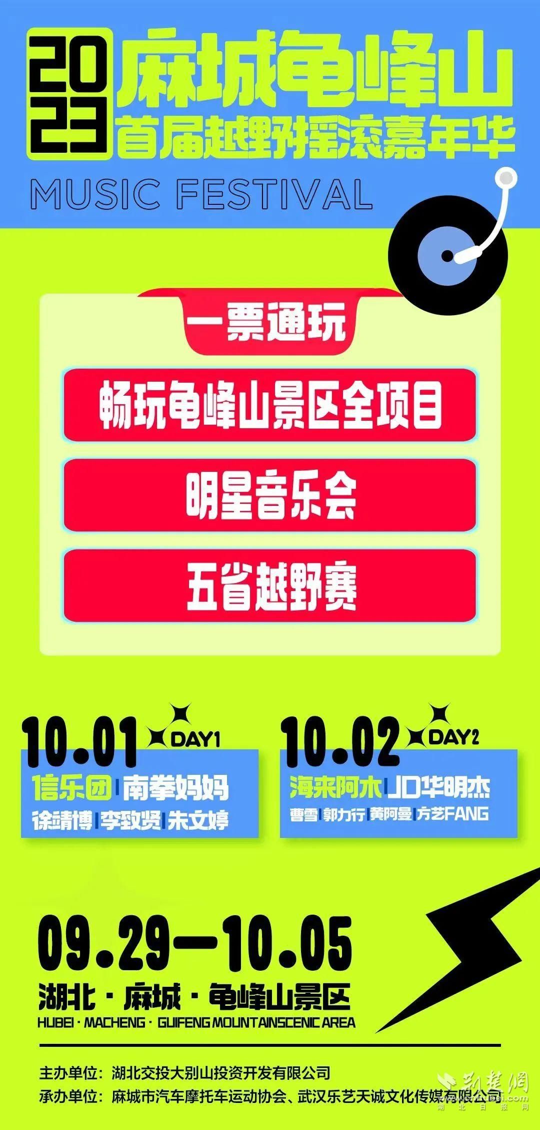 2023麻城龜峰山首屆越野搖滾嘉年華是景區(qū)首次舉行的集“場地越野車挑戰(zhàn)賽”、“明星搖滾音樂會”與“龜峰山景區(qū)內(nèi)所有配套”于一體的大型歡樂嘉年華活動。