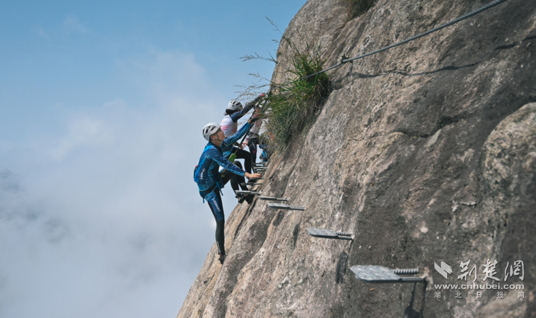 在懸崖峭壁間攀登游走的刀峰龜拉達。巧妙地將攀巖和徒步兩項運動結合,讓不會攀巖的人也能在陡峭的巖壁上“飛檐走壁”。