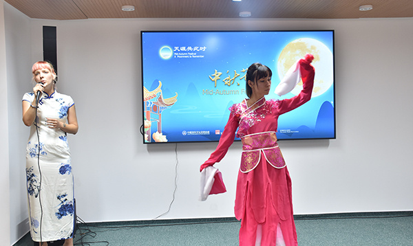 | 布加勒斯特大學孔子學院的學生表演《但愿人長久》歌舞。布加勒斯特中國文化中心供圖。 |