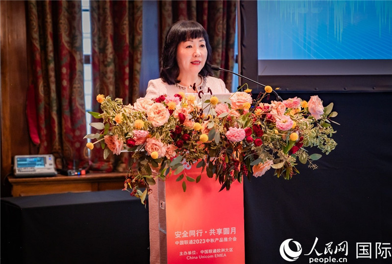 圖為中國聯(lián)通歐洲大區(qū)總經(jīng)理薛文霞總經(jīng)理致辭。人民網(wǎng) 郭錦標(biāo)攝