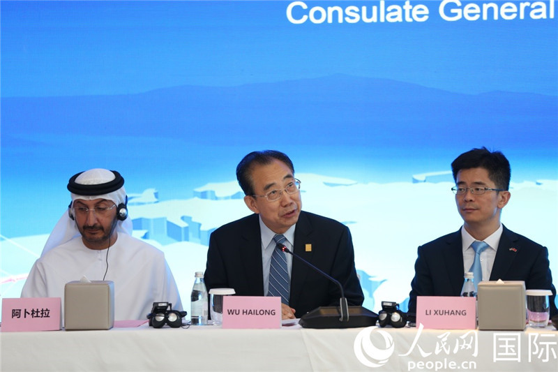 圖為中國駐迪拜總領事李旭航致辭。人民網(wǎng)記者 任皓宇攝