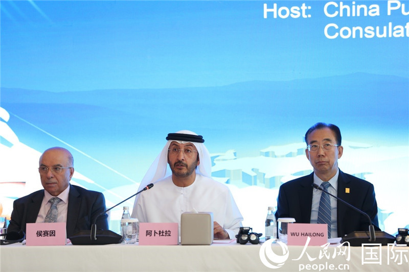 圖為阿聯(lián)酋經(jīng)濟部次長阿卜杜拉致辭。人民網(wǎng)記者任皓宇攝