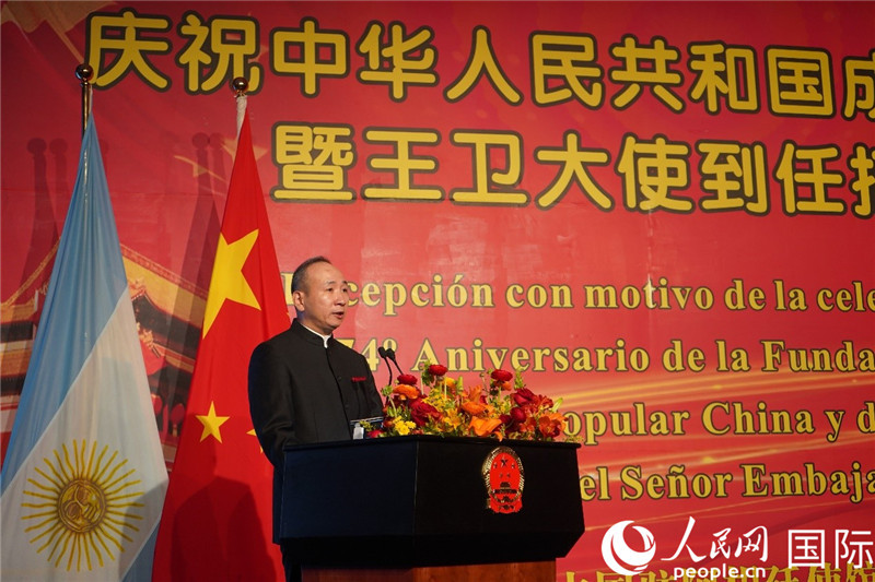 圖為中國駐阿根廷大使王衛(wèi)致辭。人民網(wǎng)記者 許放攝